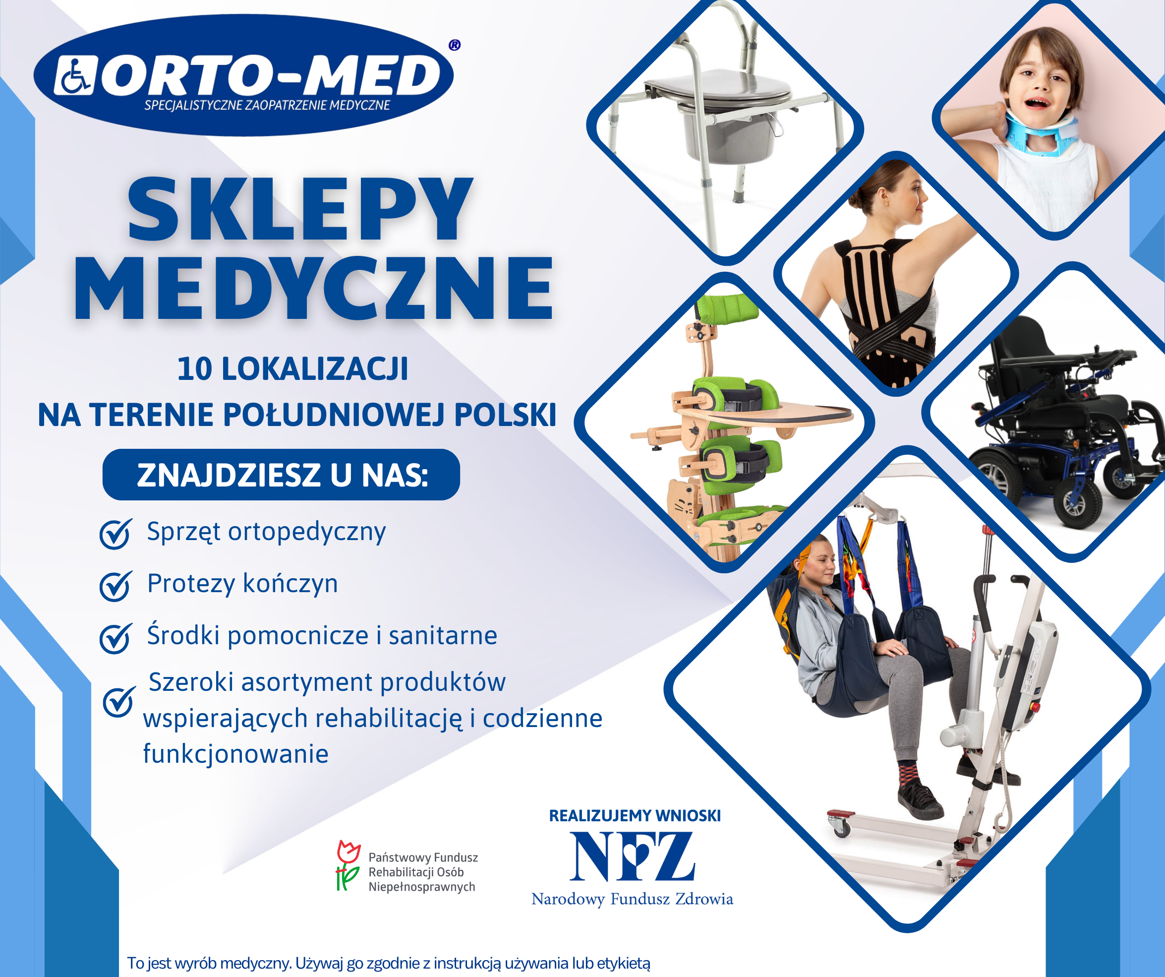 - Odbiór sprzętu w sklepie medycznym – po akceptacji NFZ można udać się do punktu realizującego zlecenia, np. jednego ze sklepów ORTO-MED (lista sklepów tutaj).